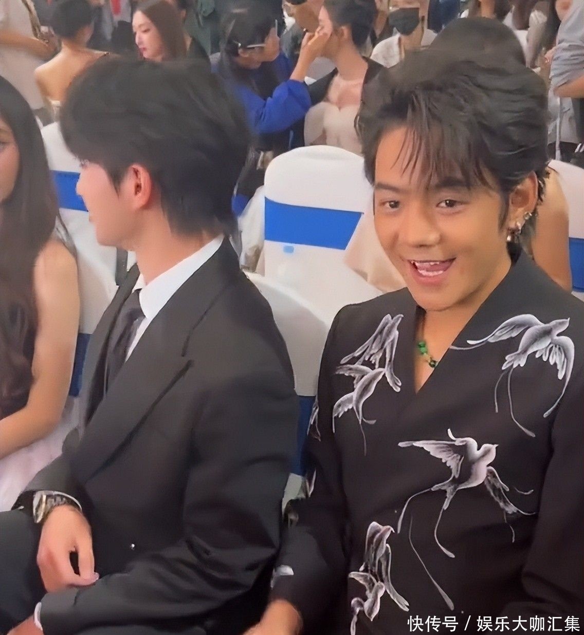 45. 安坐观众席时,他独自沉浸在自己的世界里,目光专注前方,嘴角微扬自得其乐,神情憨态可掬。