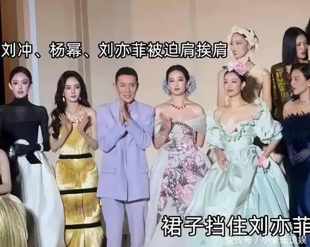 钟楚曦站在合照的中央,双脚仿佛生了根,一动不动。这个位置,本该是留给资历最深或咖位最重的人,比如压轴出场的刘亦菲和杨幂。当刘冲带着刘亦菲走向中心时,钟楚曦只是象征性地抬了抬手,脚下却没挪动分毫。随后杨幂走来,娜扎立刻默契地让开,可钟楚曦依旧稳如泰山。尴尬的一幕出现了,刘亦菲甚至绕开了她,转身去夸奖另一边的马思纯,而刘冲被挤在中间,连刘亦菲的高定裙摆都被踩到。钟楚曦的另一边却空旷得能再站一个人,这鲜明的对比瞬间点燃了网络的火药桶。