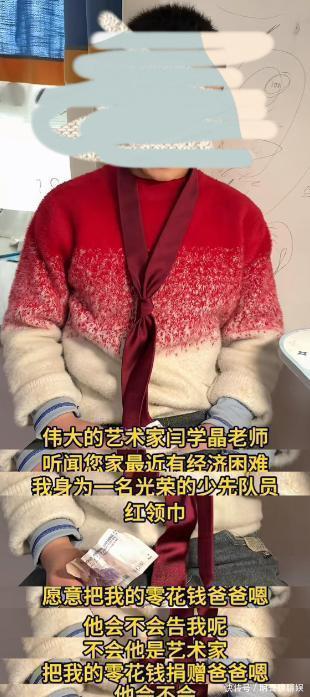 事情越闹越大,1񀙑号的时候安徽有个家长拍了段视频,让自己孩子拿񊢅块钱说要捐给闫学晶,小孩在镜头前说什么伟大的艺术家有经济困难,我是少先队员愿意把零花钱给你,然后问爸爸她会不会告我,爸爸说不会她是艺术家,又问会不会打我,还是说不会,最后问会不会嫌少,回答是不会她是人民艺术家