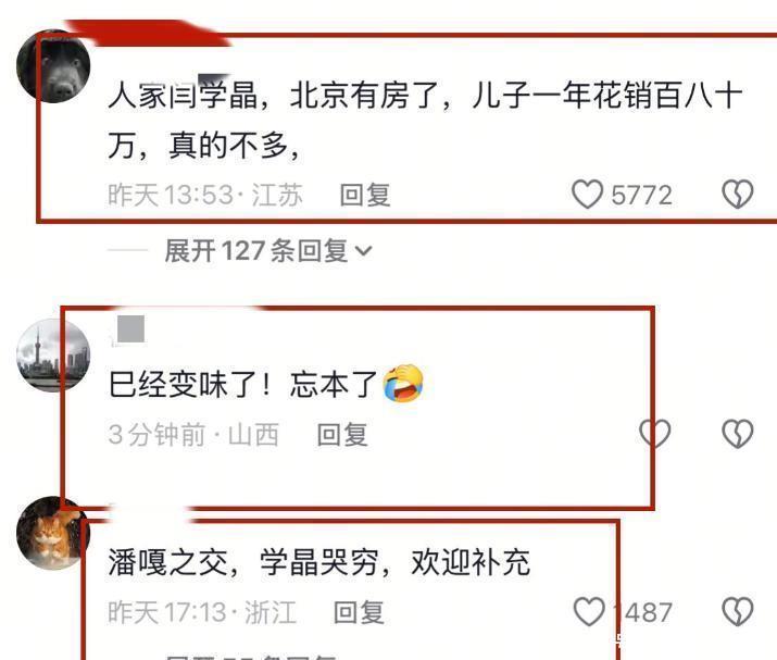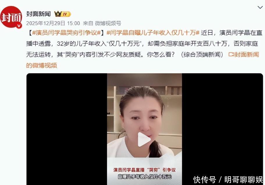 最近网上关于闫学晶的讨论实在太多了,起因就是她说自己儿子一年只赚几十万,这话一出来就炸了锅,普通人听到这个数字能不生气吗,多少人一辈子都挣不到这个数