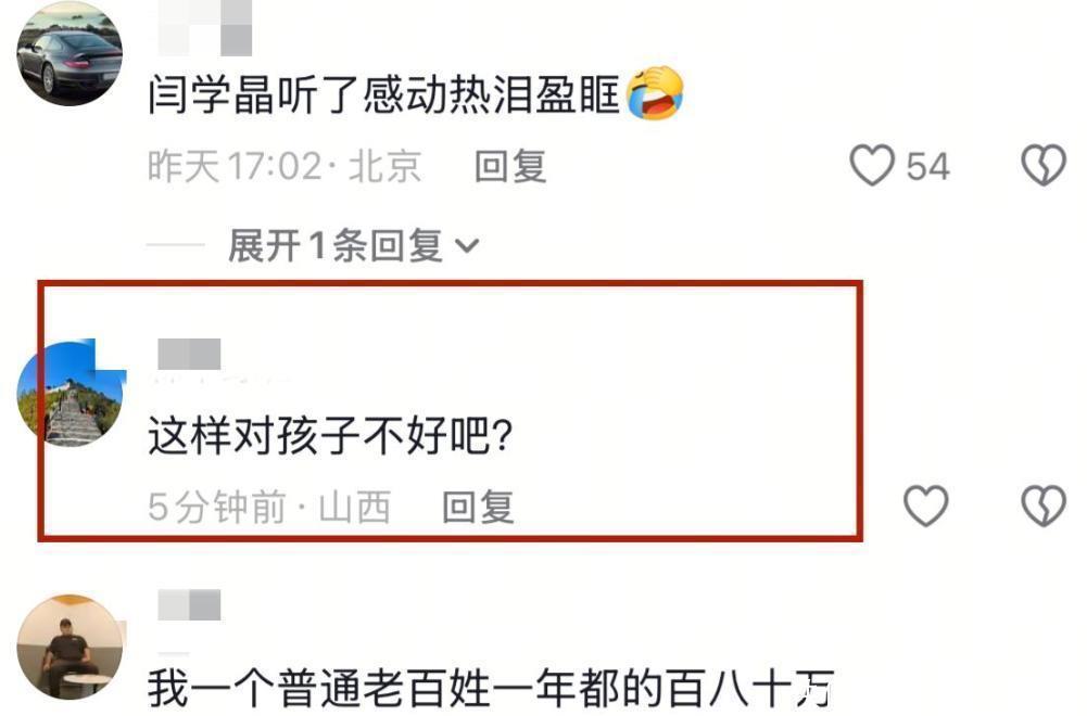 这段视频传开后很多人其实挺担心的,不管闫学晶做得对不对,让一个小孩子说这种话真的好吗,会不会影响孩子的成长,而且这么直接讽刺一个人,搞不好真要惹上麻烦,之前就有网友被她告了,因为拿她的视频和照片去卖东西,侵犯了人家权益